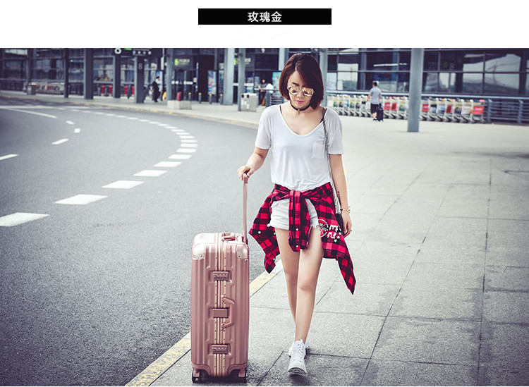名稱:鋁框箱 型號(hào):XB-26 尺寸:20英寸 35*24*49cm 24英寸 42*28*61cm 28英寸 48*29*69cm 材質(zhì):PC+ABS 鋁合金 顏色:商務(wù)銀 /玫瑰金